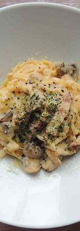 ~豚フィレ肉を低温で火を入れハムにしてグリーンピースと生クリームたっぷりのチーズで春らしいパスタに仕上げました~