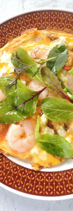 海老とトマト、チーズのオープンオムレツ