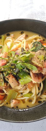 ~マグロを低温調理しツナを作り、小松菜、トマト ブイヨンでソースとしパスタを絡めました~